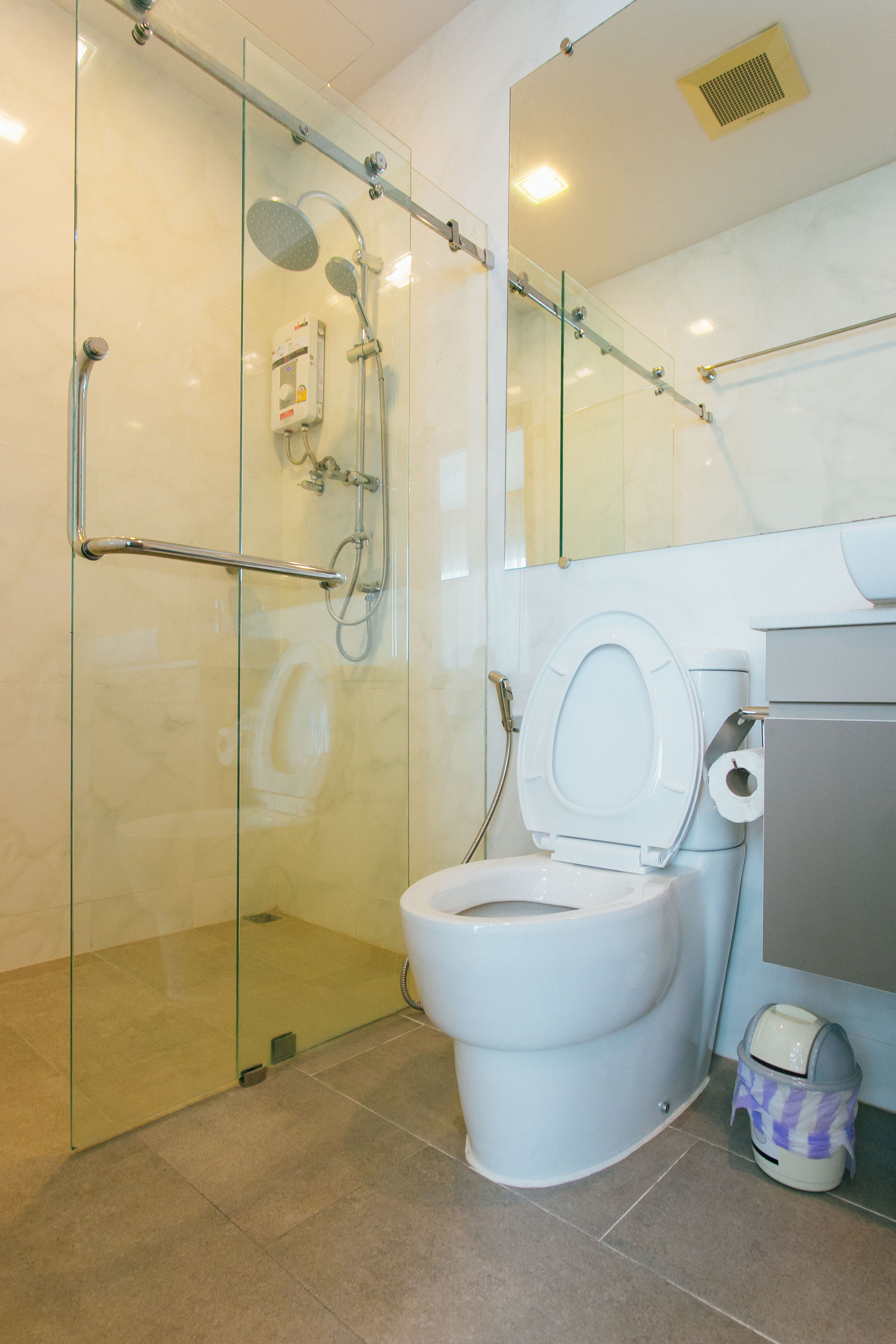 เพื่อความสะดวกสบายสูงสุด ห้องพักนี้ยังมีห้องสุขาแยกต่างหาก อ่างอาบน้ำและฝักบัว เพื่อให้คุณเลือกใช้งานตามความสะดวก นอกจากนี้ยังมีเครื่องเป่าผม ของใช้ในห้องน้ำ และผ้าขนหนูที่เตรียมไว้ให้ครบครัน